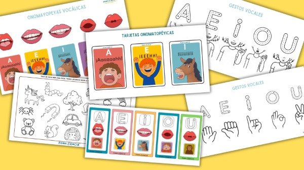 Este material combina estímulos visuales, auditivos y gestuales para reforzar el aprendizaje de las vocales.