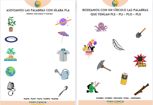 Grupos consonánticos con: P, C, B, F y G. 15 páginas de actividades.